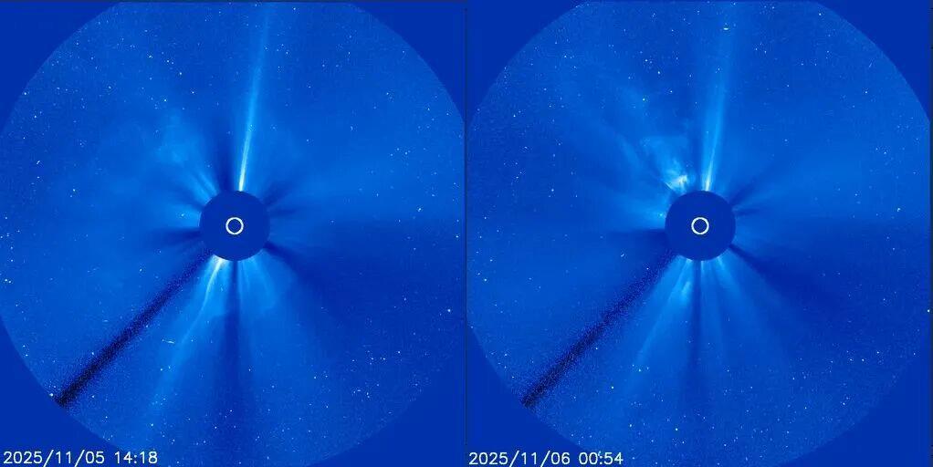 北京时间11月5日晚间19时19分以及11月6日的清晨06时07分,太阳再次耀斑两连暴,最大强度分别为M7.4和M8.6级,并伴随较为明显的日冕物质抛射(CME)。